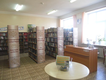 Книжный фонд библиотеки составляет 16900 экз., количество книговыдач – 71400 экз., число читателей – 2750 чел. Зав.: Ф. Т. Найденко (с 1961), С. Ф. Мусина (1978-92), Р. А. Абунагимова (1994-2015), А. А. Мухтаруллина (2016-18), Г. С. Сафиуллина (2018-21), Г. Р. Кашапова (с 2021 по наст. время).